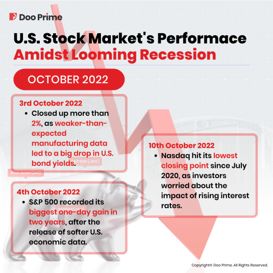 On 4th October 2022, S&P 500 recorded its biggest one-day gain in two years, after the release of softer U.S. economic data and a smaller-than-expected rate hike by the Australian Federal Reserve stoked hopes that the Fed might be less aggressive in raising interest rates.