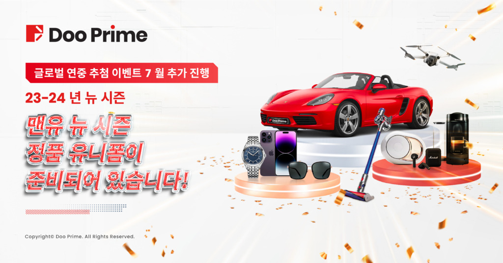 Doo Prime 글로벌 연중 대 추첨은 여전히 뜨거운 열기로 진행 중입니다. 해당 이벤트는 한 달 가까이 진행되었으며, 지금까지 2만 회가 넘는 추첨 기회를 선사하였고 수많은 럭키 머니와 다양한 상품들이 글로벌 고객님들로부터 호평을 받아왔습니다. 해당 이벤트에 대한 고객님들의 지지에 보답하기 위해 Doo Prime은 글로벌 고객님들과의 아름다운 7월을 함께 보내고자 7월의 상품 업데이트를 준비하였습니다.