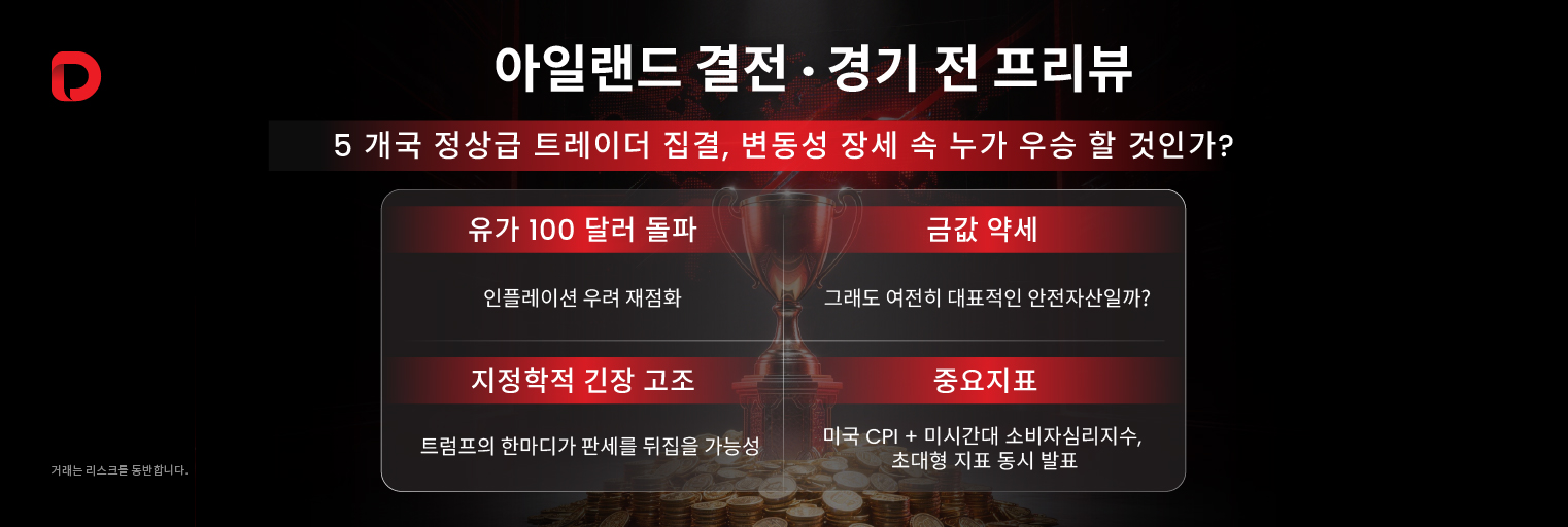 금 가격 조정과 유가 100달러 돌파 등 혼란스러운 시장 속에서 30명의 최정상 트레이더들이 어떻게 기회를 포착하는지 확인하고 싶으신가요?#DooTrader 서바이벌 아일랜드는 시청자 여러분께 보답하고자 풍성한 관전 혜택을 마련했습니다. 지금 바로 라이브를 예약하세요. 이는 단순한 경기가 아니라, 흔치 않은 실전형 마스터 클래스를 경험할 수 있는 기회입니다.