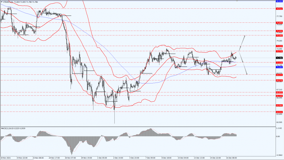 Today, oil prices are still paying attention to the 72.77-line. If oil prices run below the 72.77-line, then pay attention to the support at 71.13 and 69.37 in turn. If the oil price breaks above the 72.77-line, it will open up a further upside space. At that time, pay attention to the suppressive strength of each position at 73.52 and 75.04.