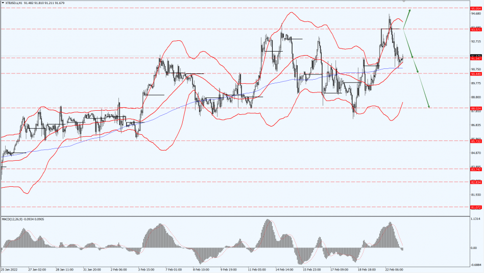 Oil prices focus on the 93.57-line today. If the oil price runs below the 93.57-line, then focus on the support strength of the 90.44 and 88.02 positions. If the oil price breaks above the 93.57-line, then pay attention to the suppression of the 95.05-line.