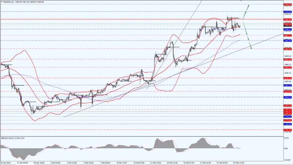 Gold pays attention to the 1909-line today. If the gold price runs steadily below the 1909-line, then it will pay attention to the support strength of the 1887 and 1880 positions. If the gold price breaks above the 1909-line, it will open up further upward space, and then pay attention to the 1919 and 1929 two positions of suppression strength.