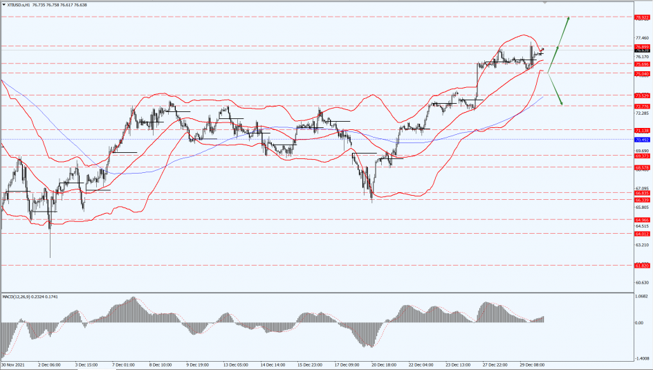 Today, oil prices pay attention to the 75.04-line. If oil prices run above the 75.04-line, then pay attention to the suppression of the 76.89 and 78.92 positions. If the oil price breaks below the 75.04 line, then pay attention to the support at the 73.52 and 72.77 positions.