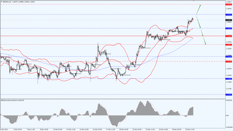 The pound today is mainly focused on the 1.3522-line. If the pound runs below the 1.3522-line, then pay attention to the support at 1.3450 and 1.3409. If the pound runs above the 1.3522-line, then pay attention to the suppression at the 1.3574-line.