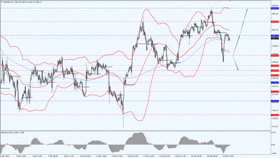 Gold prices bottomed out on Wednesday, 29th December 2021, and fell back to the 1800-mark, as a weaker dollar offset pressure from rising U.S. Treasury yields and increased investor demand for riskier assets. The main focus during the day will be on the initial claims and Chicago PMI. In addition, the European Central Bank will also release its Economic Bulletin.