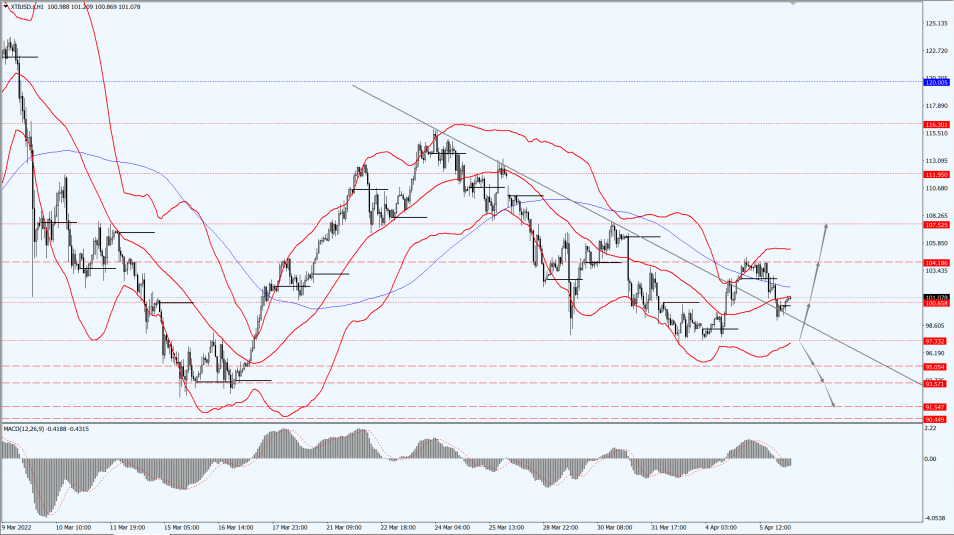 Oil prices are concerned about the 97.33-line today. If the oil price runs above the 97.33-line, then attention will be paid to the suppression strength of the two positions of 100.65 and 104.18.