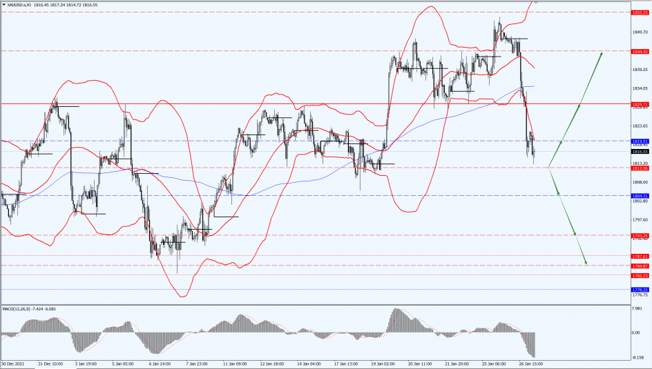 Gold pays attention to the 1812-line today. If the gold price runs steadily above the 1812-line, then it will pay attention to the suppression strength of the 1819 and 1829 positions. If the gold price falls below the 1812-line, it will open up further callback space. At that time, pay attention to the strength of 1804 and 1793.