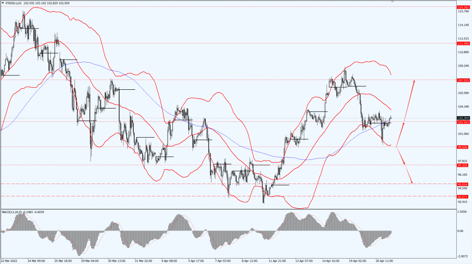 Oil prices focus on the 99.50-line today. If the oil price runs above the 99.50-line, then focus on the suppression strength of the 102.52 and 107.52 positions. If the oil price runs below the 99.50-line, then pay attention to the support strength of the 97.33 and 95.05 positions.