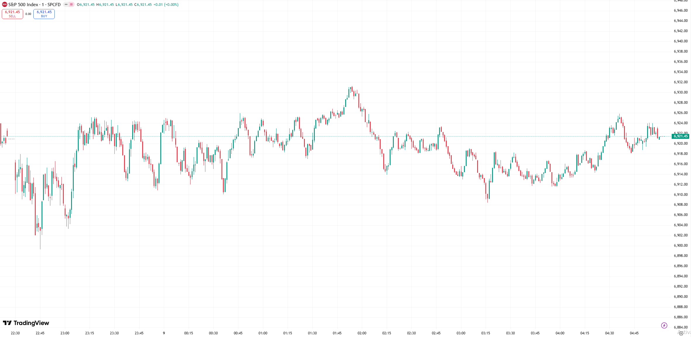 S&P 500: +0.52 (+0.01%) at 6,921.45