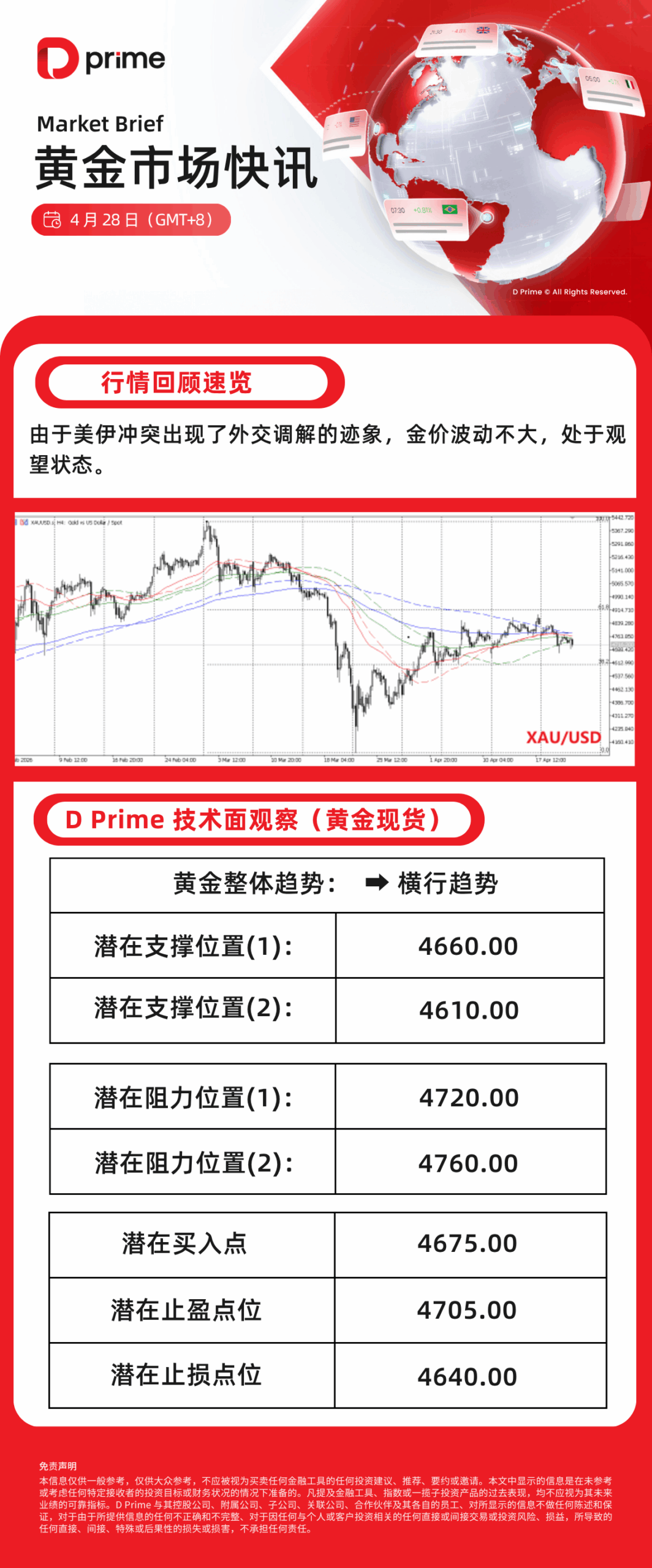 D Prime 黄金市场快讯 | 2026 年 4 月 28 日