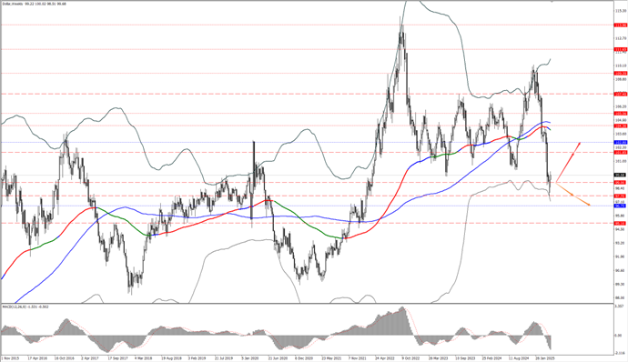 • 如果美指承压回落并力度跌破 99 一线,则依次关注 97.70 和 96.75 两个位置的支撑力度。