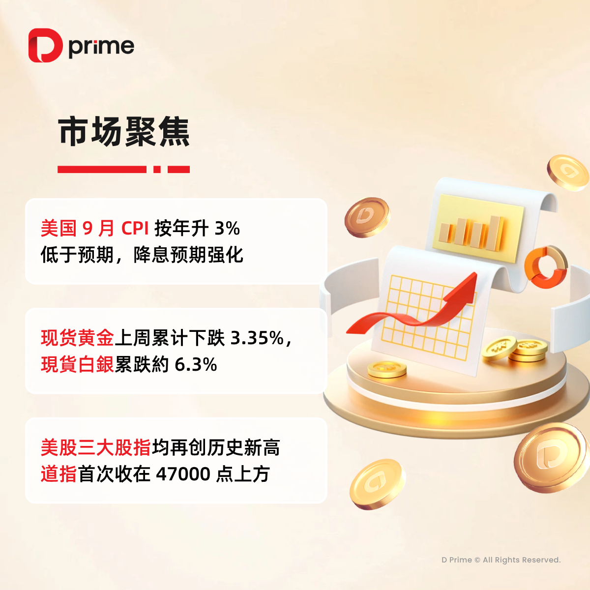 精选研报 | 上周,美国 9 月 CPI 按年升 3% 低于预期,降息预期强化,美股三大股指均再创历史新高。周多只美股科技七巨头股票将发布第三季度财报,市场预计美联储将在 10 月 29 日的会议上降息,还有哪些大事值得关注?下方图片速览: