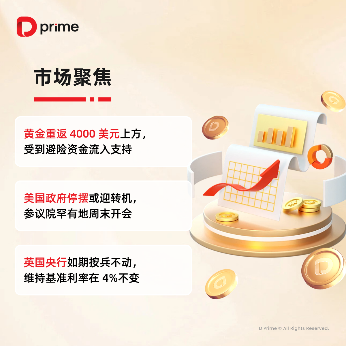 精选研报 | 上周,黄金重返 4000 美元上方,英国央行如期按兵不动,维持基准利率在 4%不变。 本周,周市场关注原定本周公布 10 月份消费物价指数(CPI)数据如继续未能如期发布,会否影响联储局的减息步伐。还有哪些大事值得关注?下方图片速览: