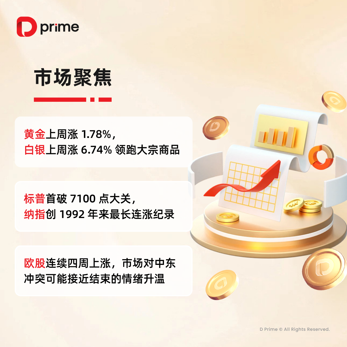 上周五,标普首破 7100 点大关,纳指创 1992 年来最长连涨纪录,地缘政治局势的急剧缓和为全球市场注入强心针。摩根大通分析师表示,能源价格的剧烈回落将显著减轻第二季度的通胀压力。