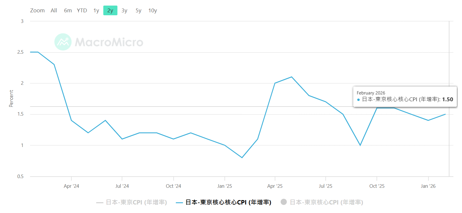 另外就是,日本东京核心 CPI 于去年10月开始整体在下降,虽然今年 1 月稍有抬头,但依然处于低位。似乎,日元并没有非常急着加息。