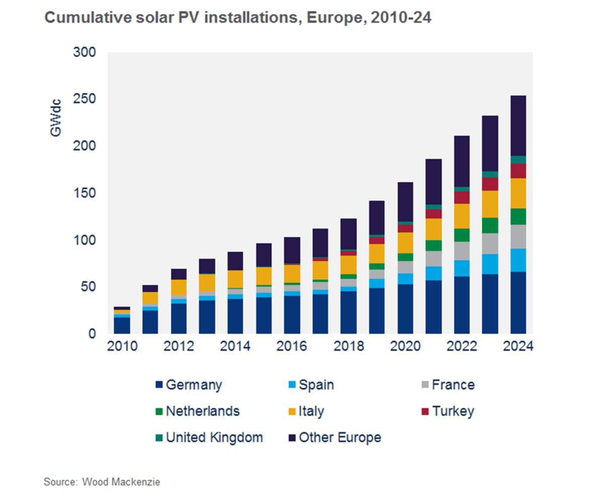 最后从结构上看,欧洲也不是傻子,在经历了2022年的能源危机之后,欧洲增加了对光伏的投资力度,根据欧洲光伏协会的报告《2025年中期欧盟光伏市场展望》,2025年6月,光伏首次成为欧盟最大的电力来源,占比22.1%,且根据欧盟的 REPowerEU 计划,2030年累计光伏装机量将达到600GW以上。
