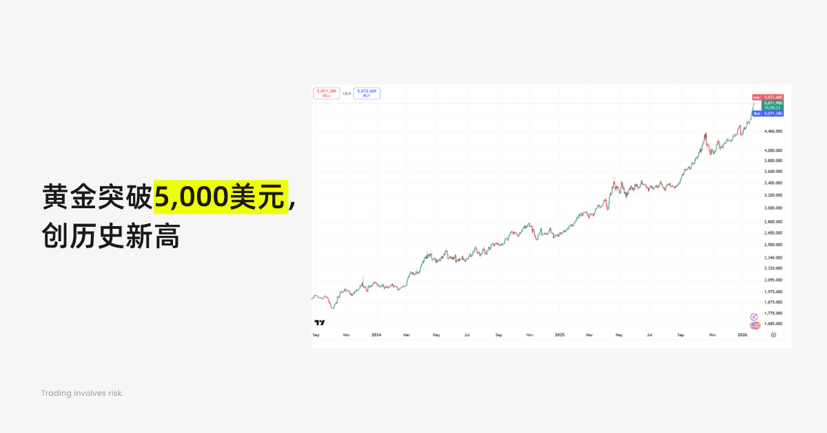 一觉醒来,黄金价格已经不知不觉突破了 5000 美元/盎司大关。这个人类商业历史上有史以来最强大的硬通货,也是曾经被说成是“不值得长期持有的无息资产”,展现出了极大的韧性。