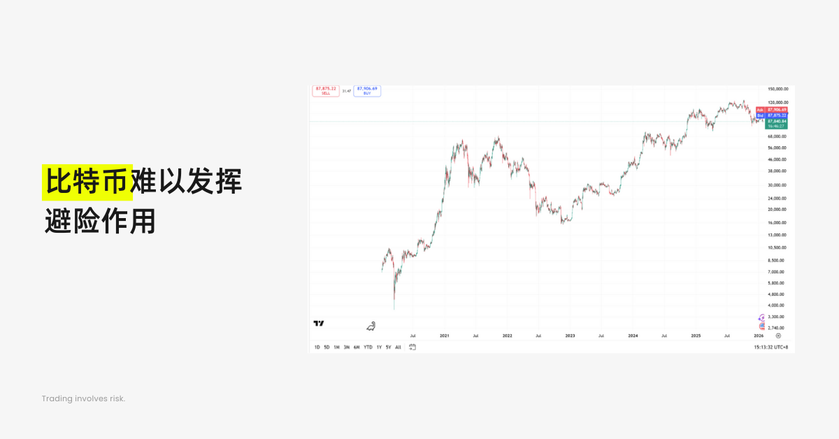然而,狂欢并没有太久,比特币并没有替代黄金的地位。事实上,从 2024 年 11 月开始,比特币就一直在8 万美元上下震荡,上不去,也下不来。在世界并不太平的 2025 年,即使俄乌冲突依然在持续,即使委内瑞拉和伊朗发生政治事件,即使美元信用危机愈演愈烈,比特币更像一个局外人,并不像黄金那样,成为避险资产。