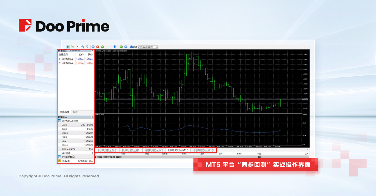 MT5 上的另一项实用功能非“同步回测”功能莫属,它是指在一个交易策略上同时进行多个市场条件和参数的测试。交易者能够利用 MT5 上丰富的分析工具,通过图形化展示,从历史市场数据的表现,评估策略的有效性和收益潜力,从而优化方案并减少潜在风险。更为重要的是,MT5 的回测速度极快,尤其适合多种货币对的交易分析。