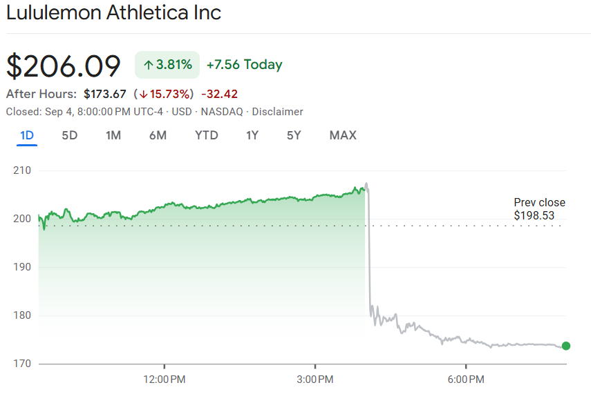 运动服饰品牌 Lululemon(LULU) 公布第二财季业绩,本季营收同比增长 6.8% 至 25.3 亿美元,略低于市场预期的 25.4 亿美元;每股收益(EPS)为 3.1 美元,优于分析师估计的 2.87 美元。