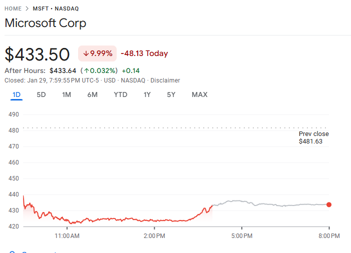微软市值单日蒸发 3,570 亿美元,创美股史上第二大纪录