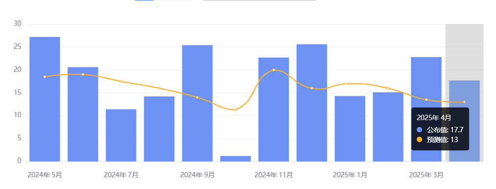 5 月 2 日,美国劳工统计局公布,美国 4 月非农就业人口增长 17.7 万人,预期 13.8 万人;3 月前值从 22.8 万人下修至 18.5 万人;2 月份非农就业岗位增幅也下调了 1.5 万个合计少了 5.8 万个。