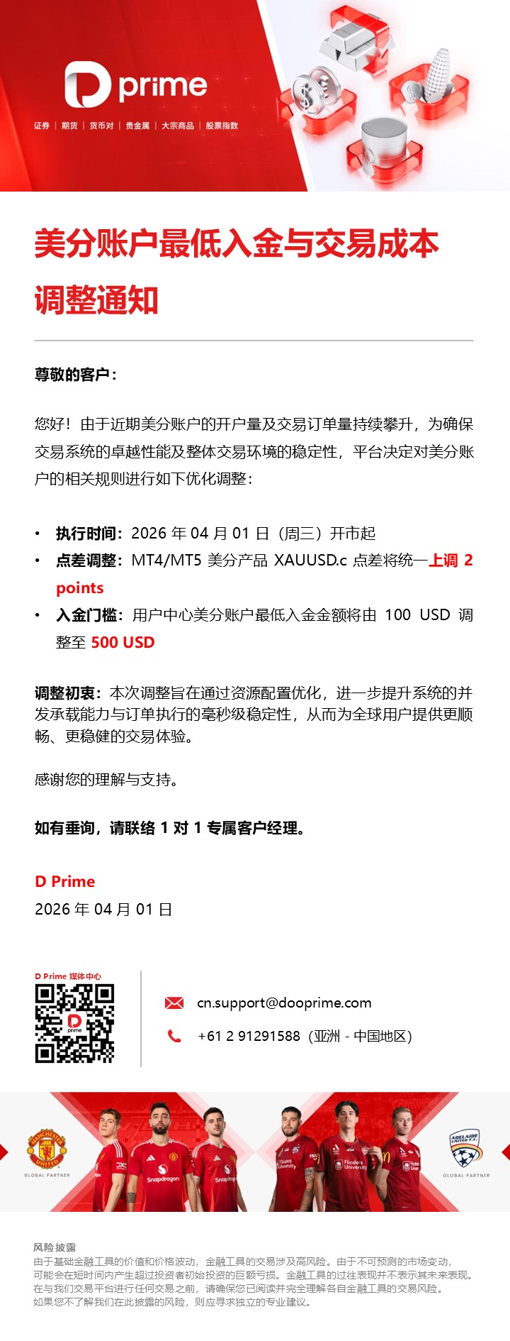 美分账户最低入金与交易成本调整通知