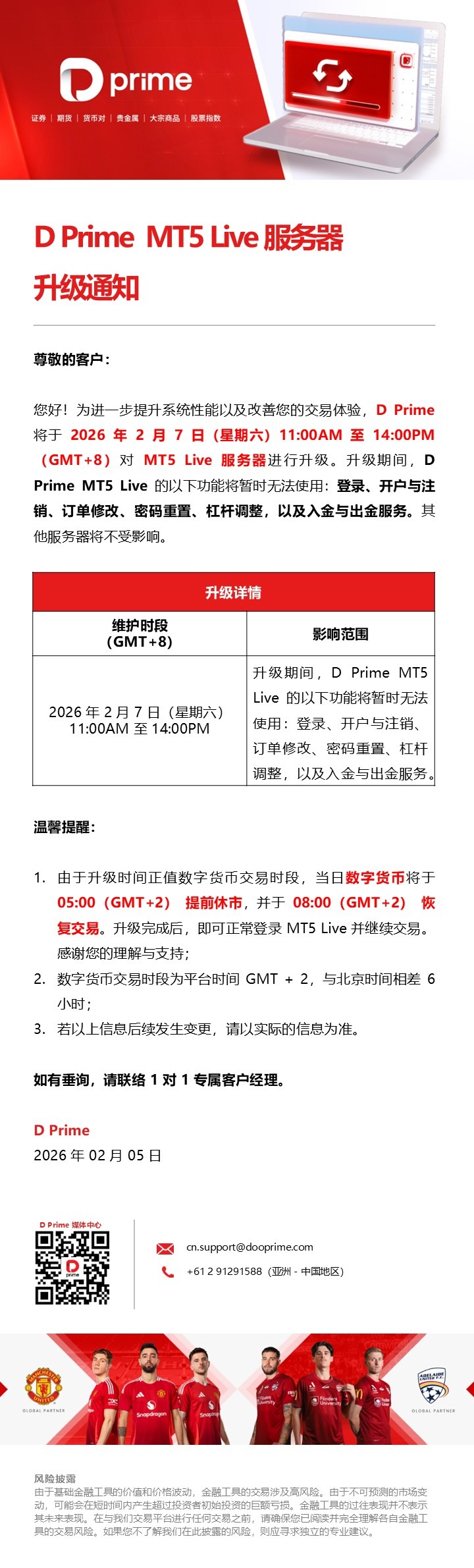 D Prime MT5 Live 服务器升级通知