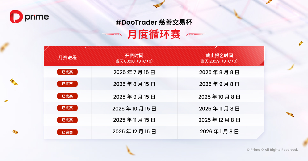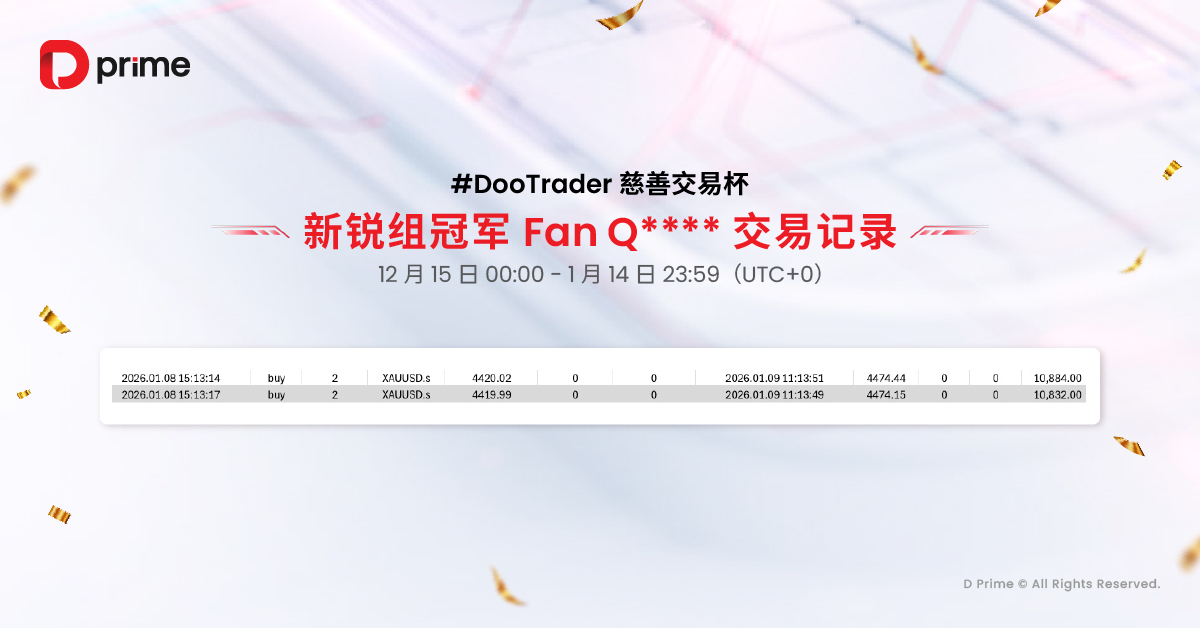 每当您在比赛中完成 1 手交易,D Prime 都将代表您捐出 0.1 美元,帮助改善贫困儿童的教育条件,让您的每一笔交易助力点亮更多孩子的未来。
