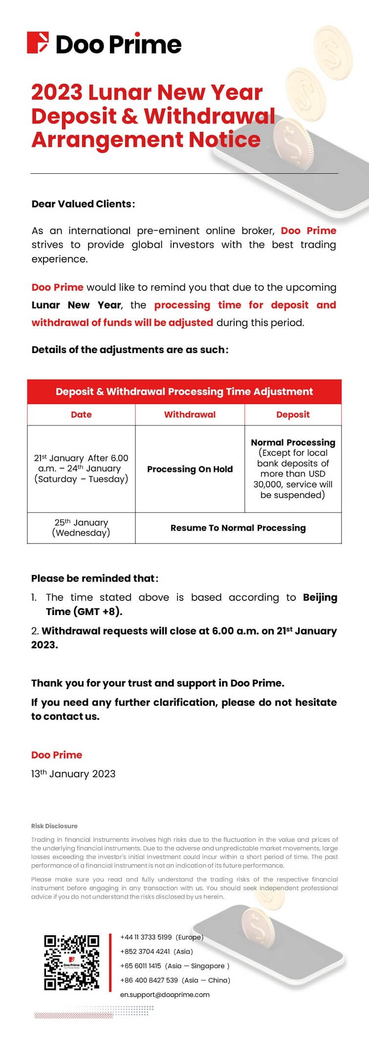 2023-01-13 | Deposit & Withdrawal Arrangement Notice