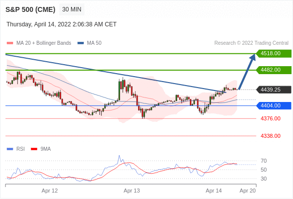 Long positions above 4404.00 with targets at 4482.00 & 4518.00 in extension.