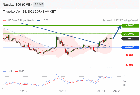 Long positions above 14040.00 with targets at 14320.00 & 14490.00 in extension.