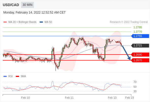 Short positions below 1.2755 with targets at 1.2690 & 1.2670 in extension.