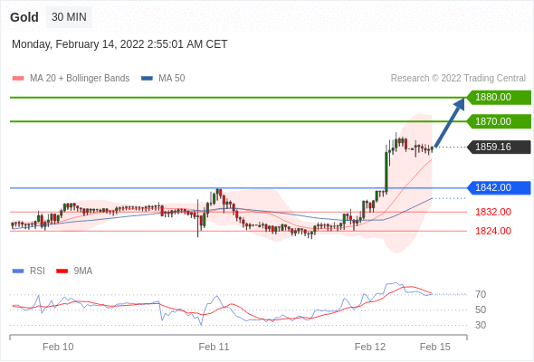 Long positions above 1842.00 with targets at 1870.00 & 1880.00 in extension.