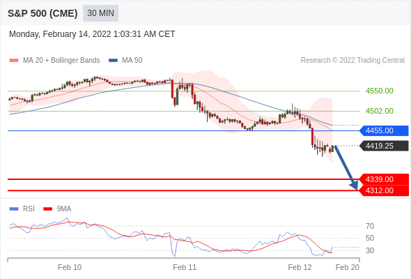 Short positions below 4455.00 with targets at 4339.00 & 4312.00 in extension.