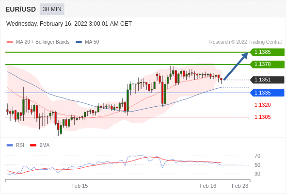 Long positions above 1.1335 with targets at 1.1370 & 1.1385 in extension.