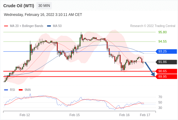 Short positions below 93.25 with targets at 90.65 & 89.95 in extension.
