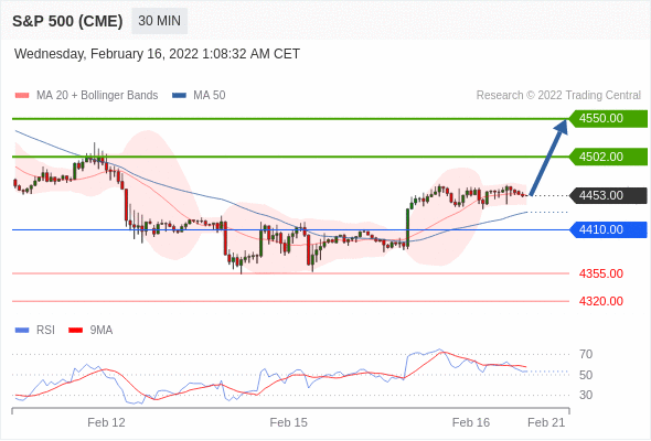 Long positions above 4410.00 with targets at 4502.00 & 4550.00 in extension.