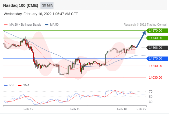 Long positions above 14370.00 with targets at 14740.00 & 14870.00 in extension.