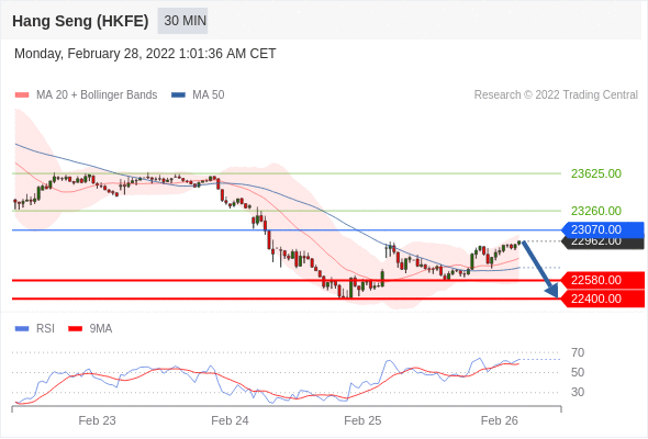 Short positions below 23070.00 with targets at 22580.00 & 22400.00 in extension.