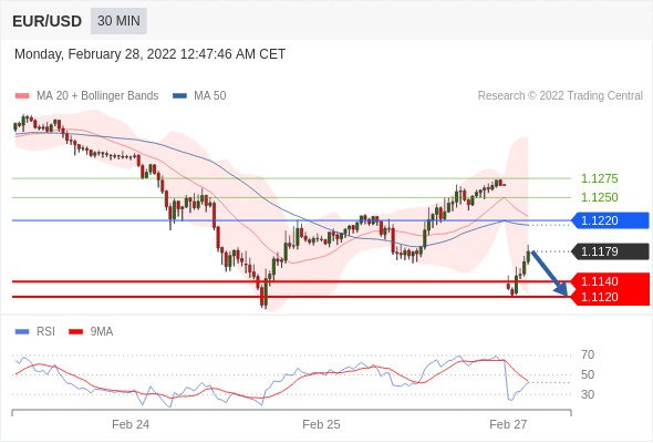 Short positions below 1.1220 with targets at 1.1140 & 1.1120 in extension.