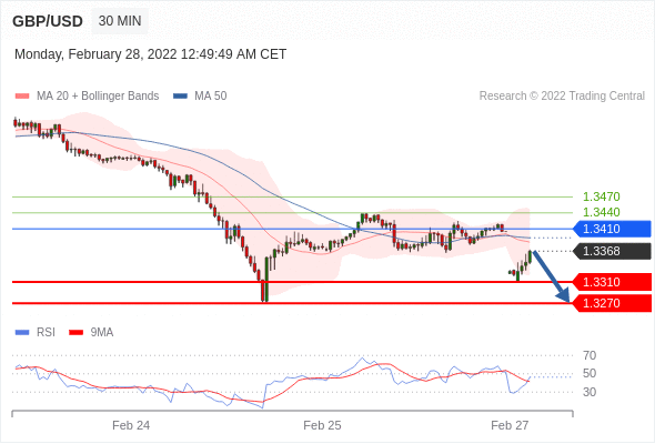 Short positions below 1.3410 with targets at 1.3310 & 1.3270 in extension.