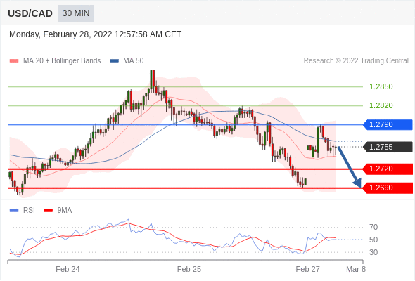Short positions below 1.2790 with targets at 1.2720 & 1.2690 in extension.