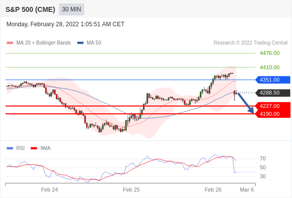 Short positions below 4351.00 with targets at 4227.00 & 4190.00 in extension.