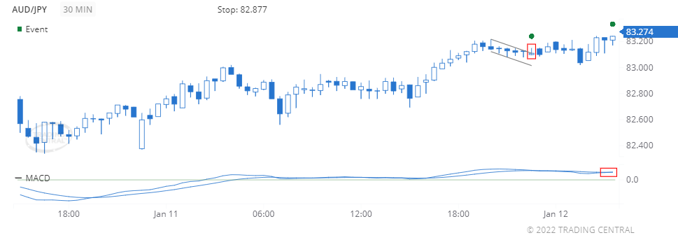 The MACD generated a bullish signal on 2022 Jan 12 at 03:30 GMT.