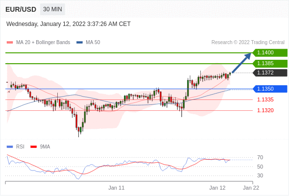 Long positions above 1.1350 with targets at 1.1385 & 1.1400 in extension.