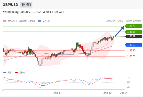 The break above 1.3610 is a positive signal that has opened a path to 1.3655.