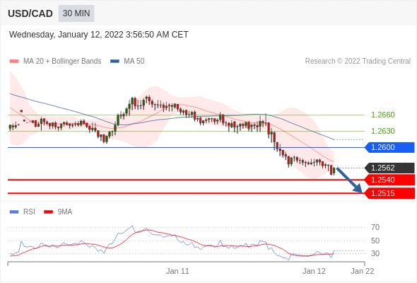 A break below 1.2540 would trigger a drop towards 1.2515.
