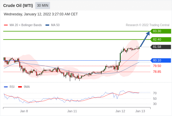 Long positions above 80.10 with targets at 82.40 & 83.30 in extension.