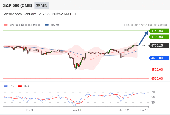 Long positions above 4635.00 with targets at 4750.00 & 4782.00 in extension.